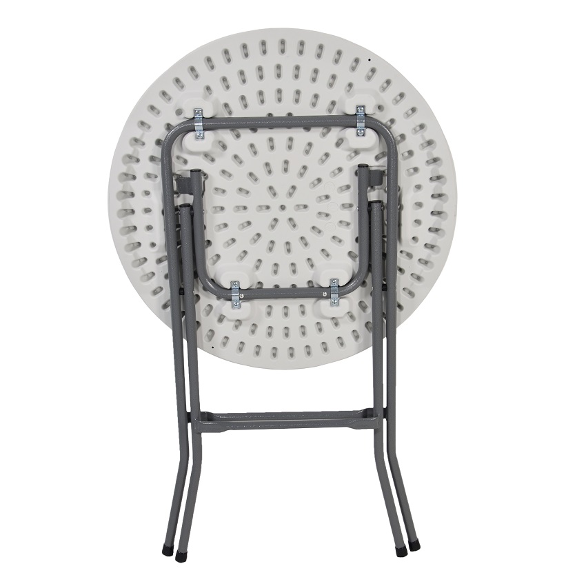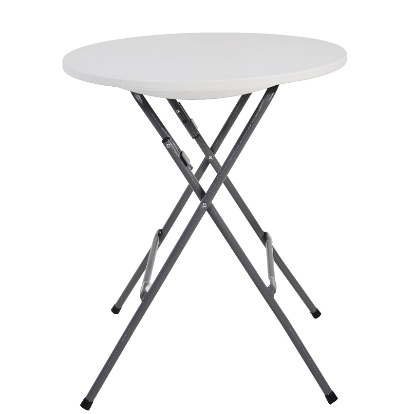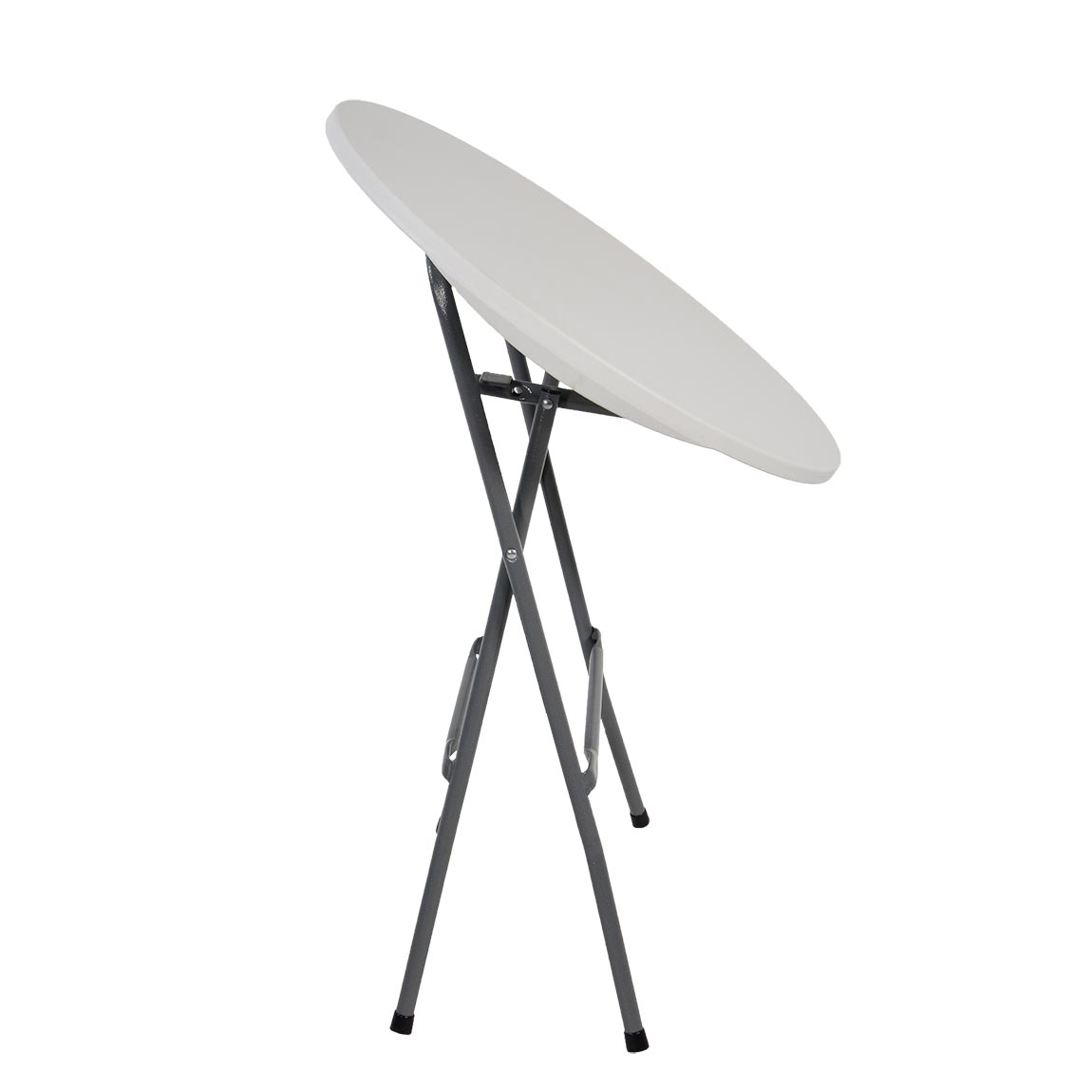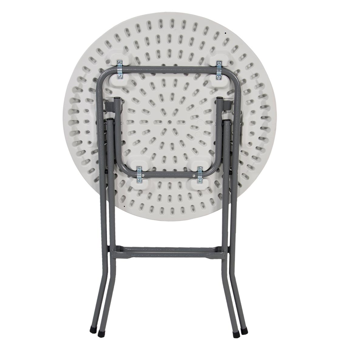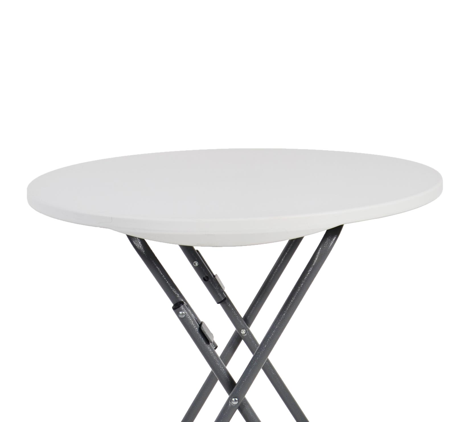 Balkontafel inklapbaar. Deze ronde tafel heeft een 60 cm rond kunststof tafelblad en metaal onderstel. De tafel is 73,5 cm hoog. De balkontafel is inklapbaar en licht in gewicht. Hierdoor is de tafel makkelijk te verplaatsen en/of op te bergen. Het witte tafelblad is strak afgewerkt. Deze tafel is geschikt voor in de tuin, op het balkon, op de camping maar ook voor indoor gebruik. Doordat deze tafel makkelijk te vervoeren is, is het ook geschikt voor evenementen.