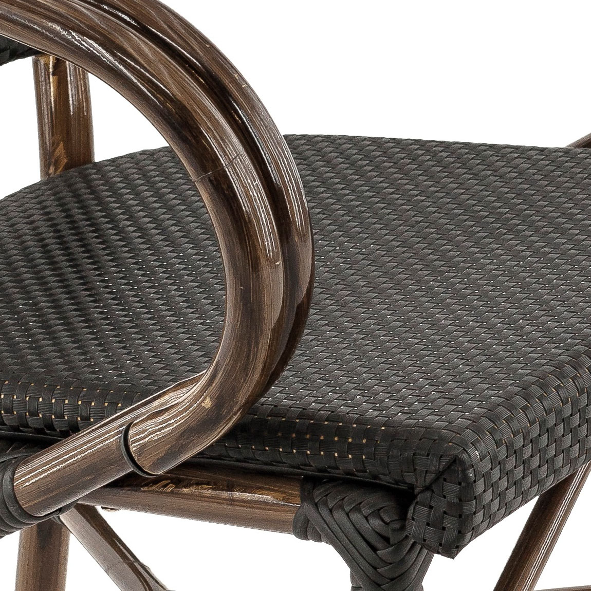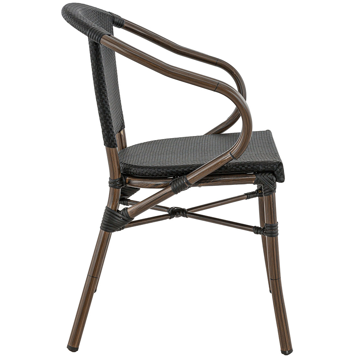 Deze terrasstoel is voorzien van een stevig aluminium frame met elegante armleuningen en met een bamboe-look afwerking, wat zorgt voor een warme, natuurlijke uitstraling. De zitting en rugleuning zijn vervaardigd van duurzaam textileen, waardoor de stoel niet alleen comfortabel is maar ook bestand tegen weersinvloeden.