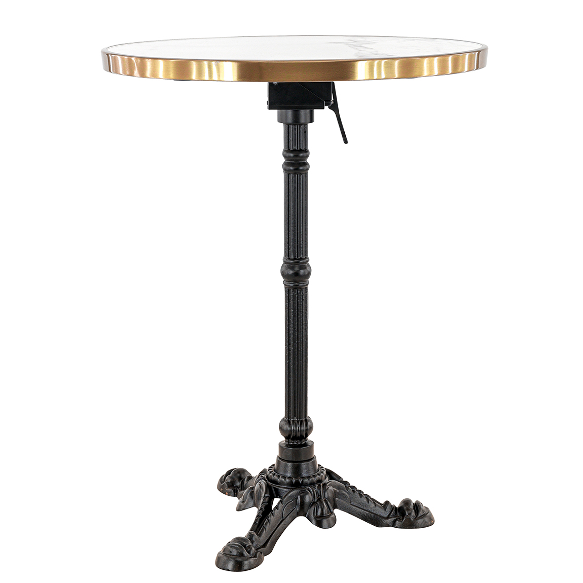 Bistrotafel marmerlook inklapbaar met sierring en gietijzeren tafelpoot