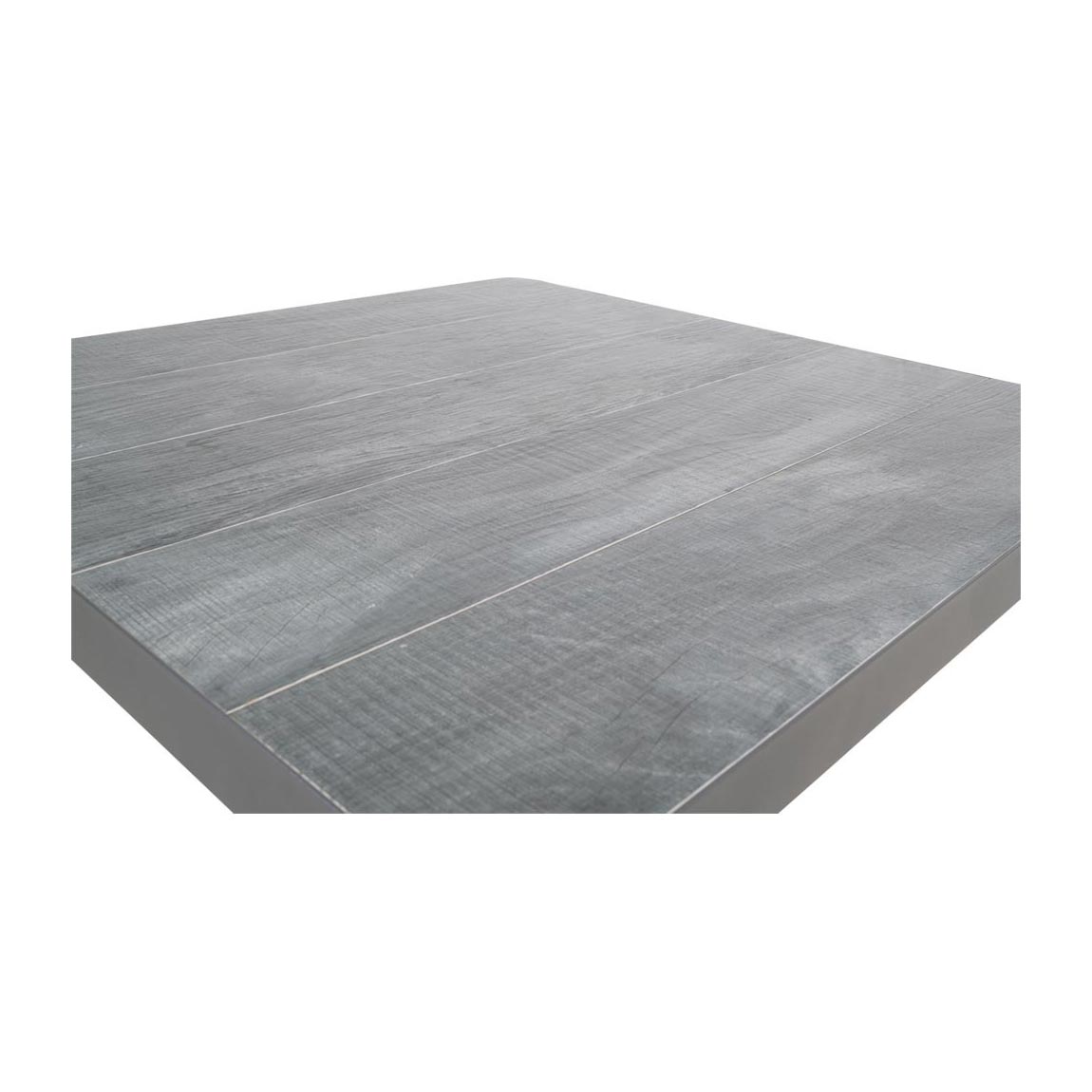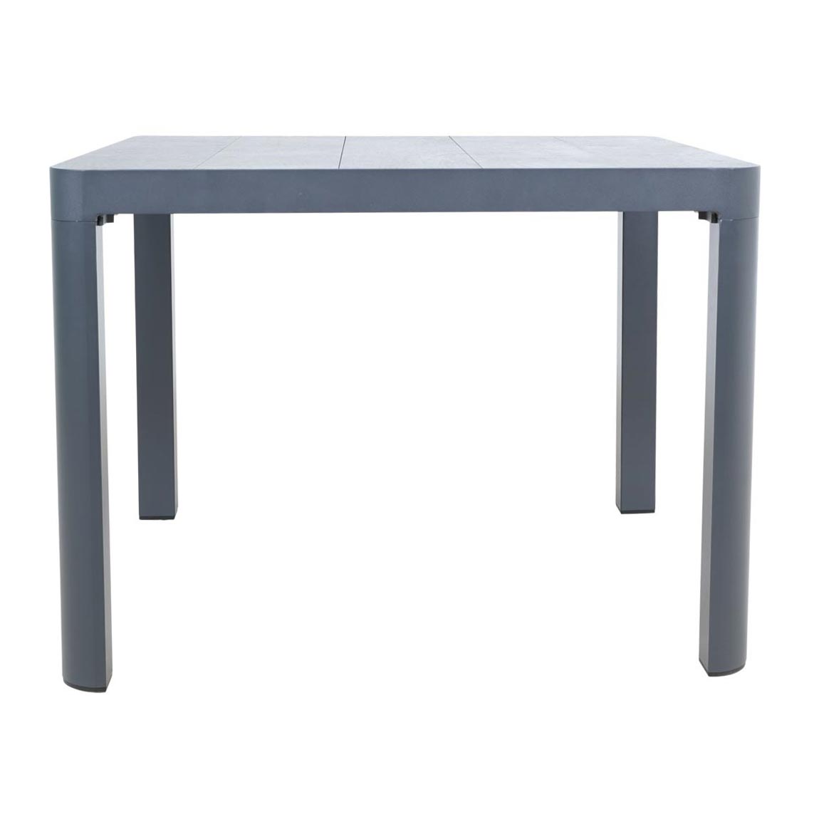 Tuintafel Castilla 2.0 Negro kleur antraciet. Deze vierkante tuintafel is 100 cm lang, 100 cm breed en is 74 cm hoog. Het frame is gemaakt van stevig aluminium. Het tafelblad is gemaakt van keramiek. De tuintafel is rond afgewerkt.